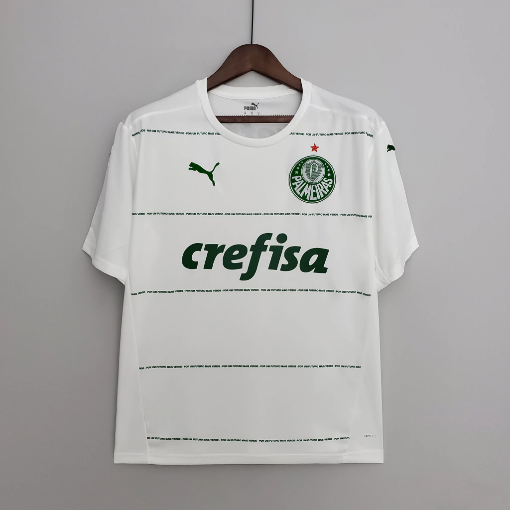 Camisa oficial do Palmeiras modelo II 2023/24, produzida pela Puma. Confeccionada em tecido leve e respirável, na cor branca com detalhes verdes, traz o escudo do clube bordado no peito, patrocínio frontal da Crefisa e tecnologia DryCell para maior conforto durante o uso. Ideal para demonstrar sua paixão pelo Verdão dentro e fora dos estádios.