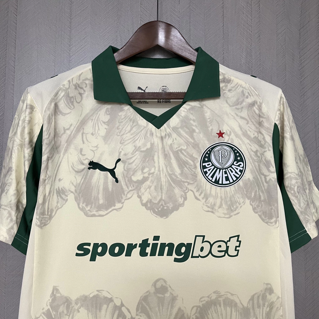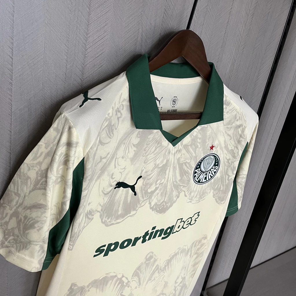 No topo do mundo! A Camisa Palmeiras KidSuper Torcedor Puma Feminina celebra a fibra do Alviverde e é daquelas indispensáveis na coleção. Inspirada no legado do primeiro Campeão Mundial, esta camisa do Palmeiras traz folhas sobre um tom dourado, homenageando umas das maiores glórias da história palmeirense. Confeccionada em poliéster, é leve e super macia, enquanto o escudo bordado exibe com orgulho sua paixão. Com tecido tecnológico, a camisa Palmeiras mundial afasta a umidade do corpo, mantendo o conforto necessário das arquibancadas ao dia a dia.