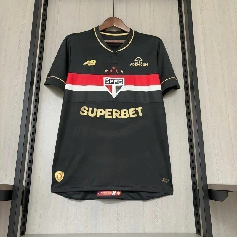 Celebre a glória do maior Campeão Mundial do país! A Camisa São Paulo III 25/26 Comemorativa New Balance é um tributo à conquista que transcendeu fronteiras e daqueles artigos indispensáveis na coleção Tricolor. Inspirada no uniforme de goleiro de 2005, esta camisa do São Paulo é uma releitura do manto que assistiu e participou do maior feito da história do clube. Com as icônicas listras em vermelho e branco sobre o fundo preto, escudo centralizado e detalhes únicos, a camisa São Paulo masculina é símbolo de conexão entre o passado e presente. Vista a história – compre a sua e aproveite!