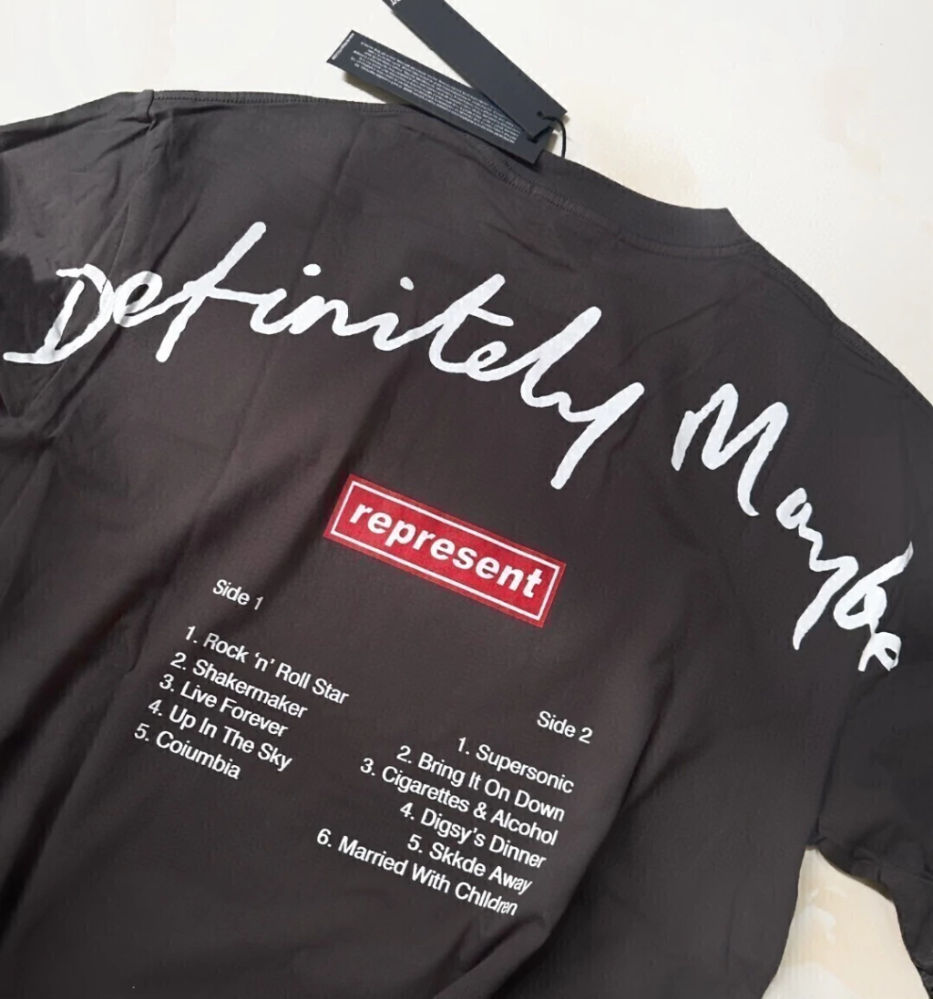Uma fusão entre o estilo urbano da Represent e a alma do rock britânico do Oasis. Inspirada no lendário álbum Definitely Maybe (1994), essa peça celebra um dos maiores marcos da música dos anos 90 em uma collab que une moda, atitude e nostalgia.